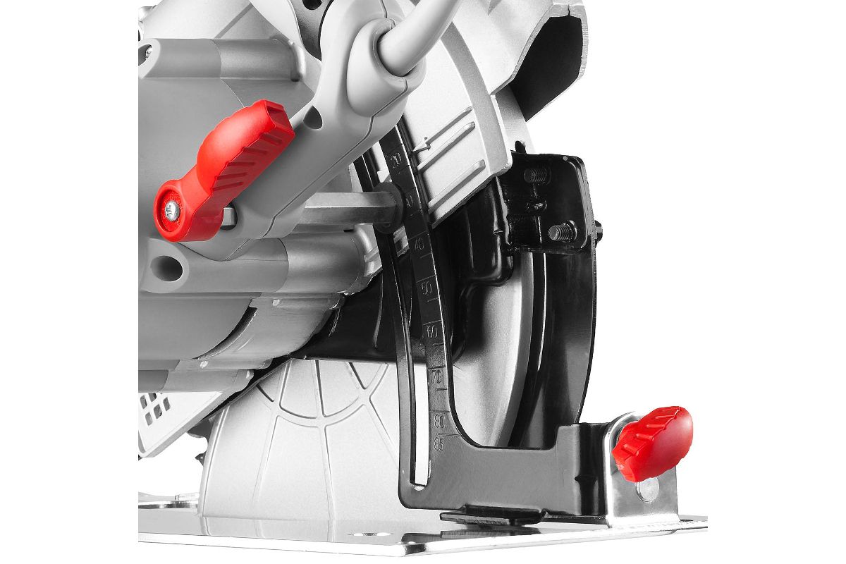 - Бесступенчатая регулировка глубины пиления и угла наклона удобными эксцентриковыми рычажками в одно движение;